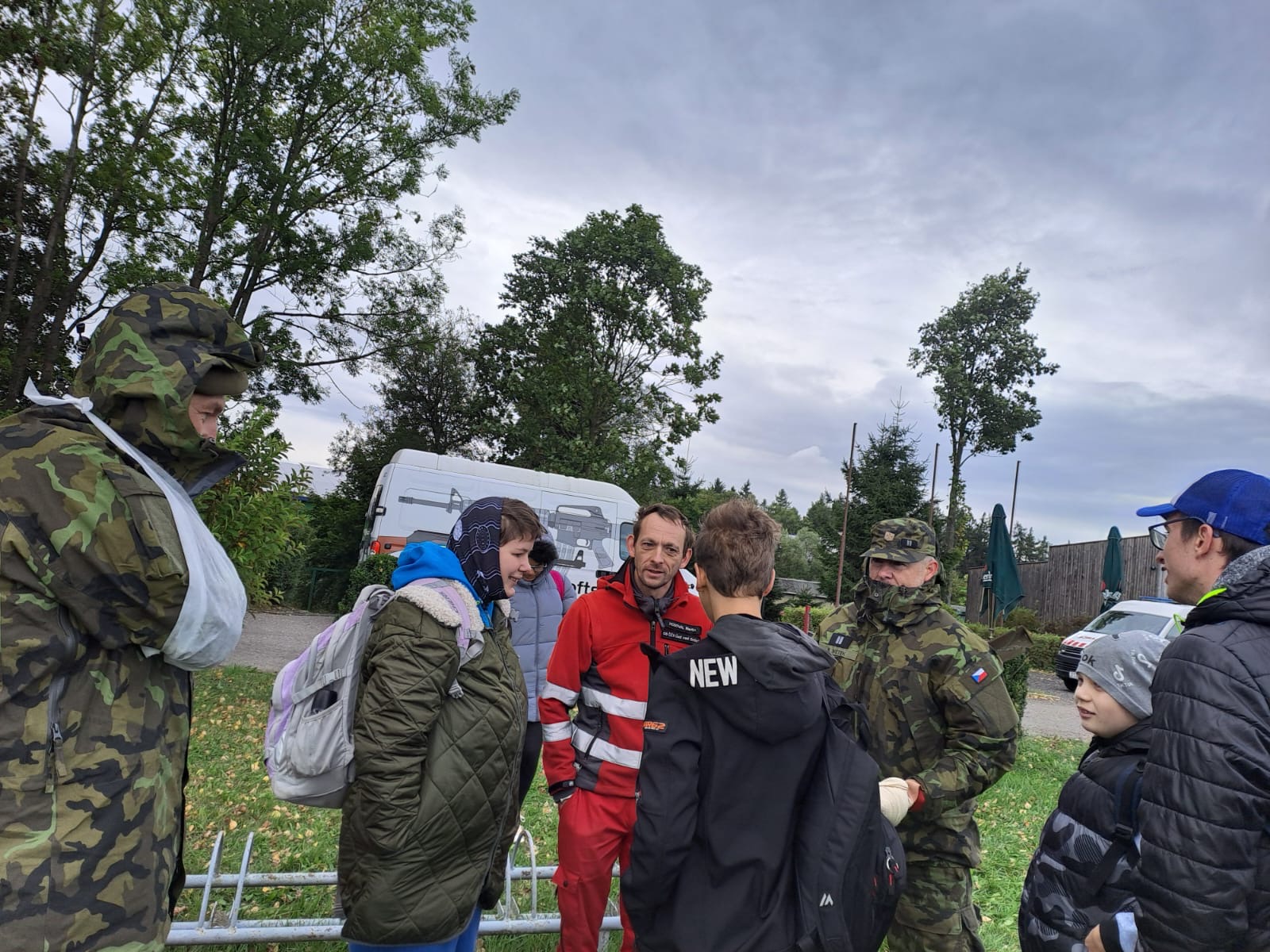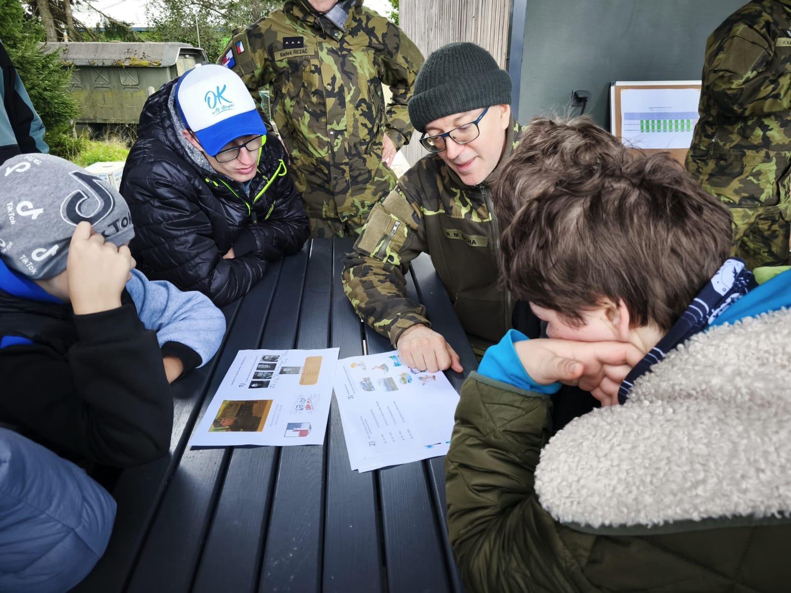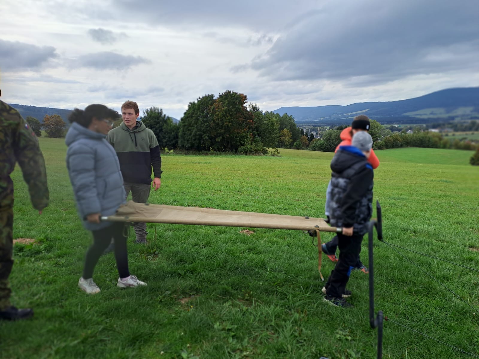 Ve středu 24.9.2025 se žáci naší školy zúčastnili vědomostně-branného závodu Memoriál četaře Arnošta Hrada, který každoročně pořádá Krajské vojenské velitelství Pardubice. Děti musely vypracovat test prověřující jejich znalosti historické a topografické, dále plnily před pěchotním srubem K-S 14 U cihelny různé disciplíny – orientace podle azimutu, airsoftová střelba, střelba ze vzduchovky, silovka, ošetření zranění a hašení vodou. V druhé části závodu musely děti zvládnout běh podzemím tvrze Hůrka, zdolat více než 280 schodů zpět na zemský povrch. Poté na stanovištích plnily úkoly a cestou zpět k pěchotnímu srubu musely zaznamenávat symboly, které jim v cíli pomohly vyluštit zašifrovanou tajenku. Po zdárném výkonu se děti občerstvily opečeným buřtem, sušenkou a vodou. Za účast v závodě získaly ocenění a krásné dárky.
