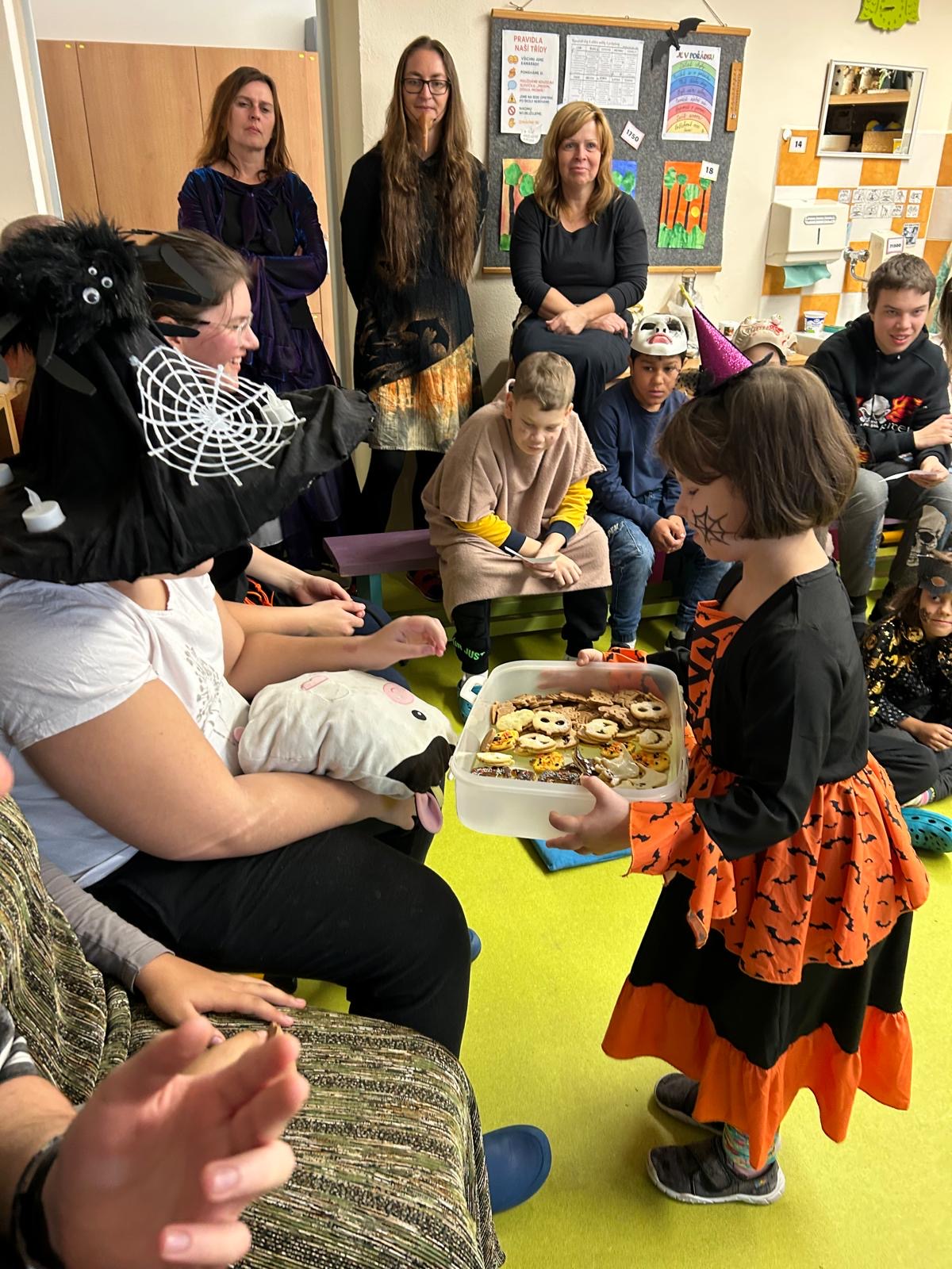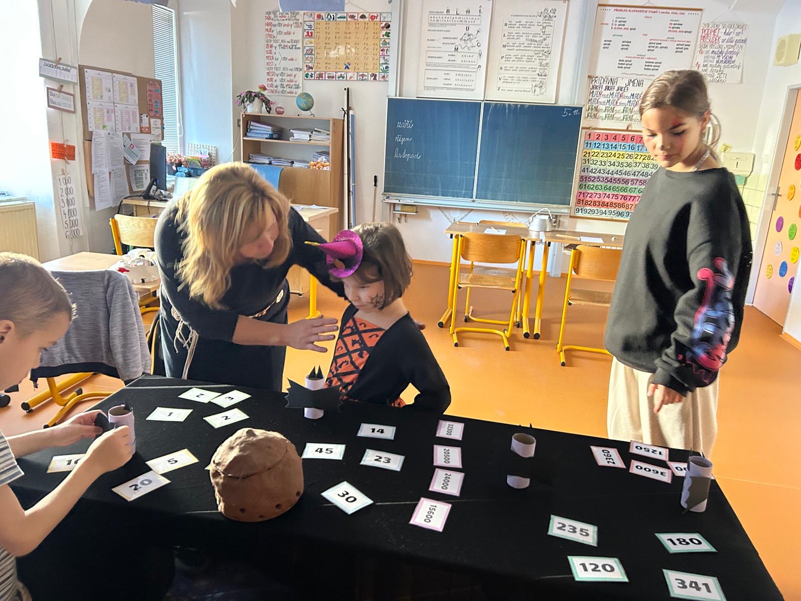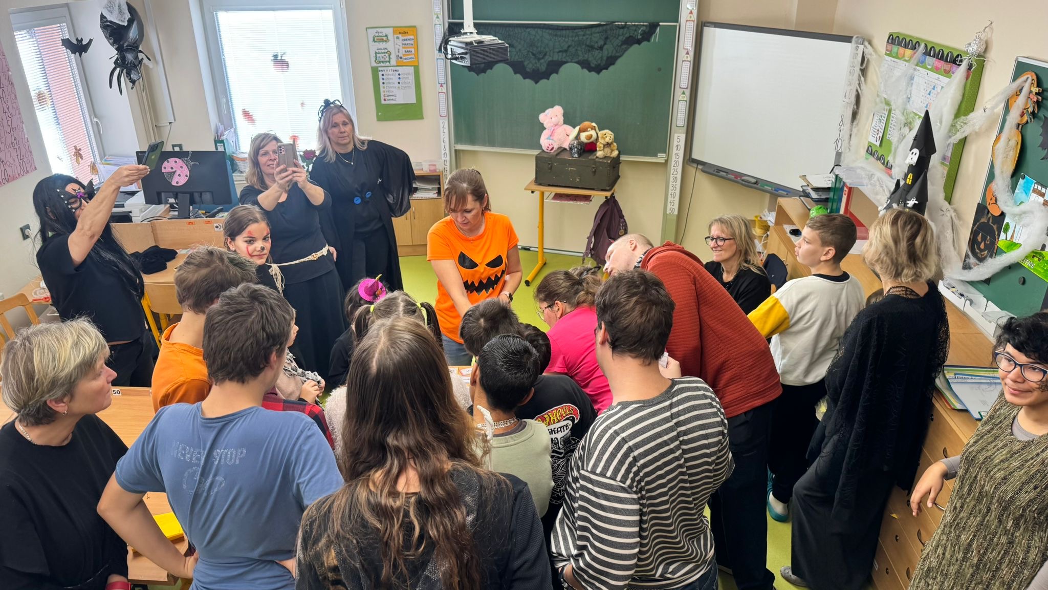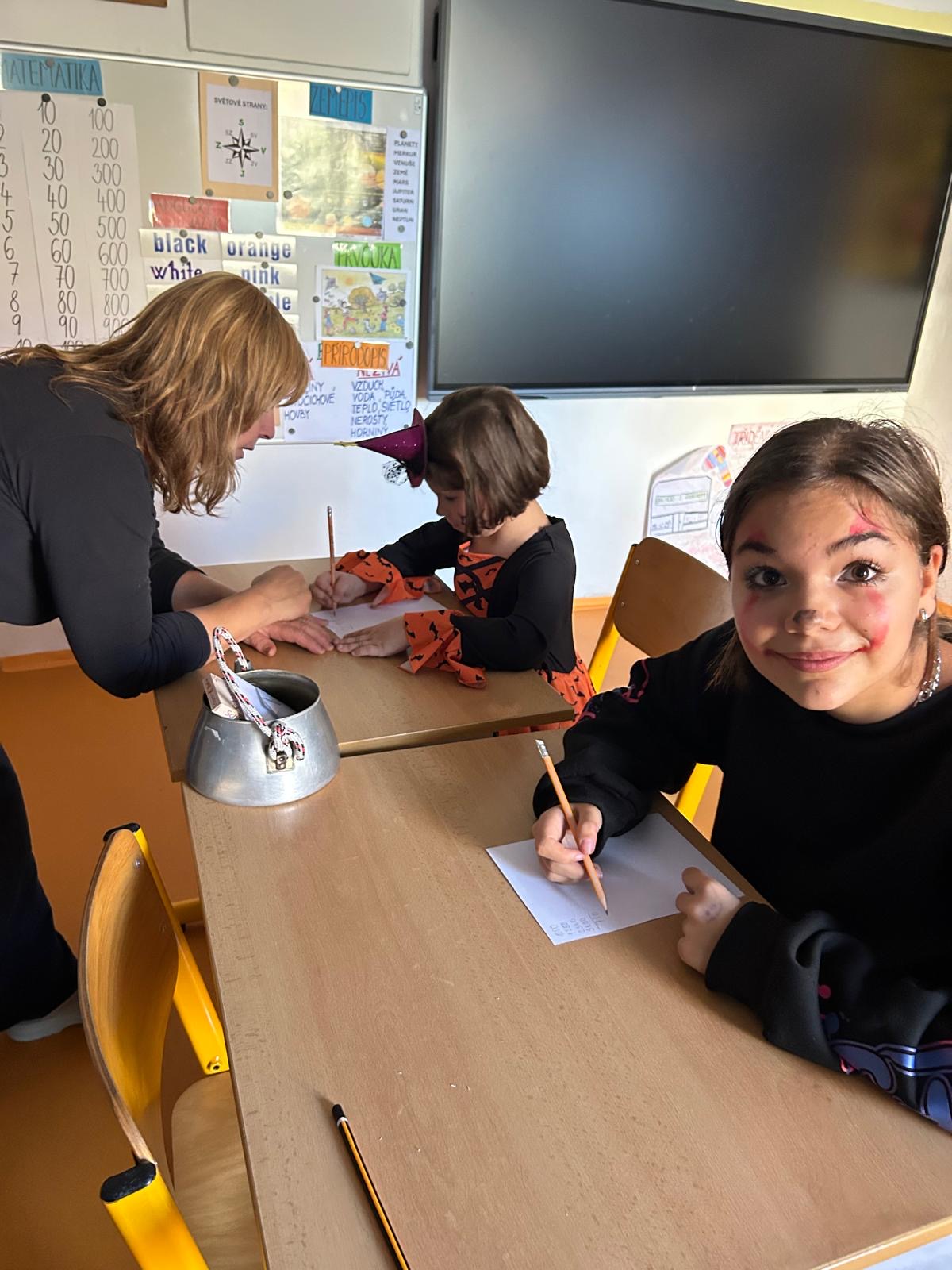 Včerejší den byl pro nás výjimečný. První hodinu proběhlo komunitním setkáním, na kterém si naše strašidla připravila strašidelně skvělá vystoupení pro své spolužáky 👻. Smích a potlesk naplnily celou školu – a to byl teprve začátek!