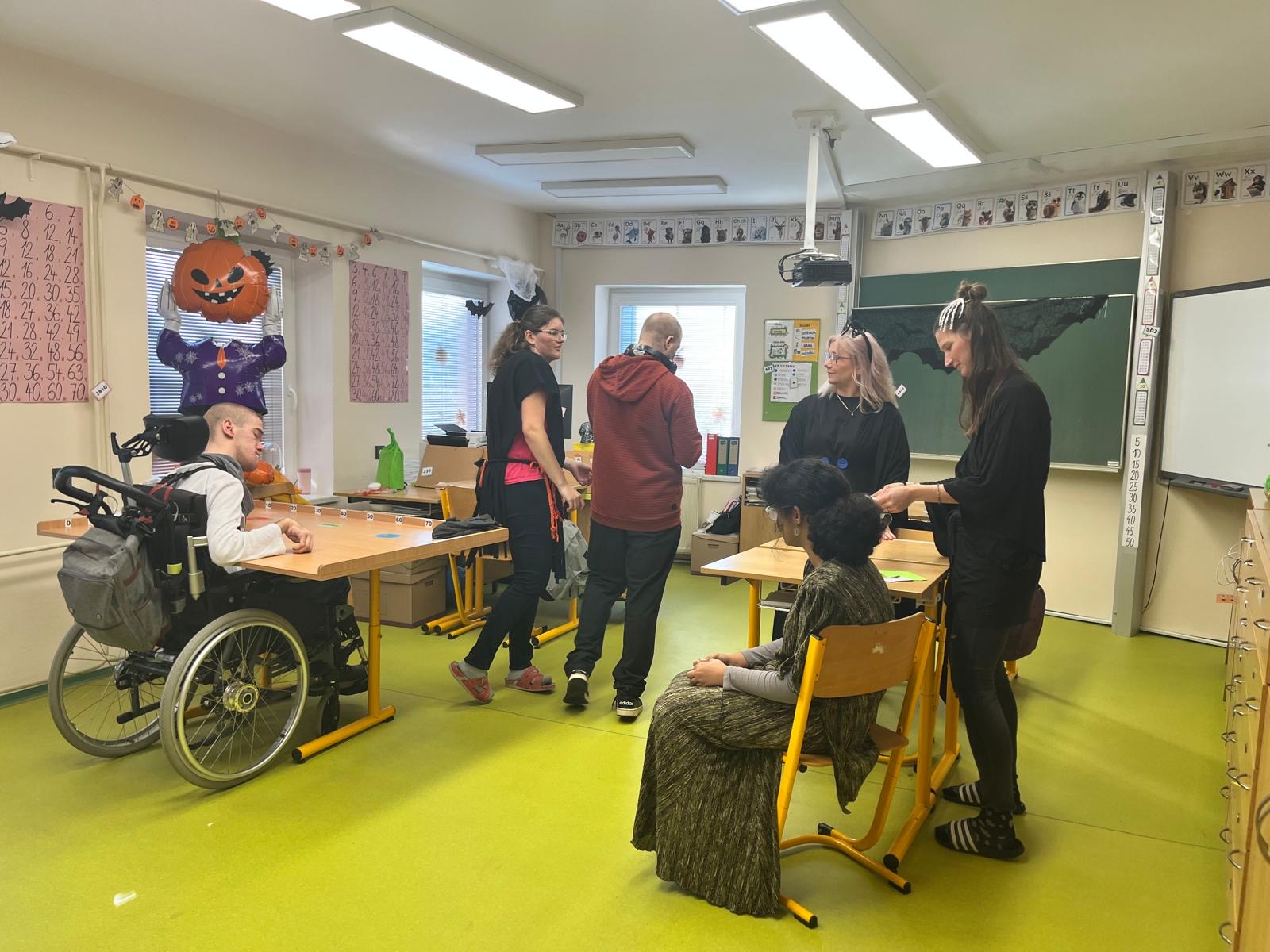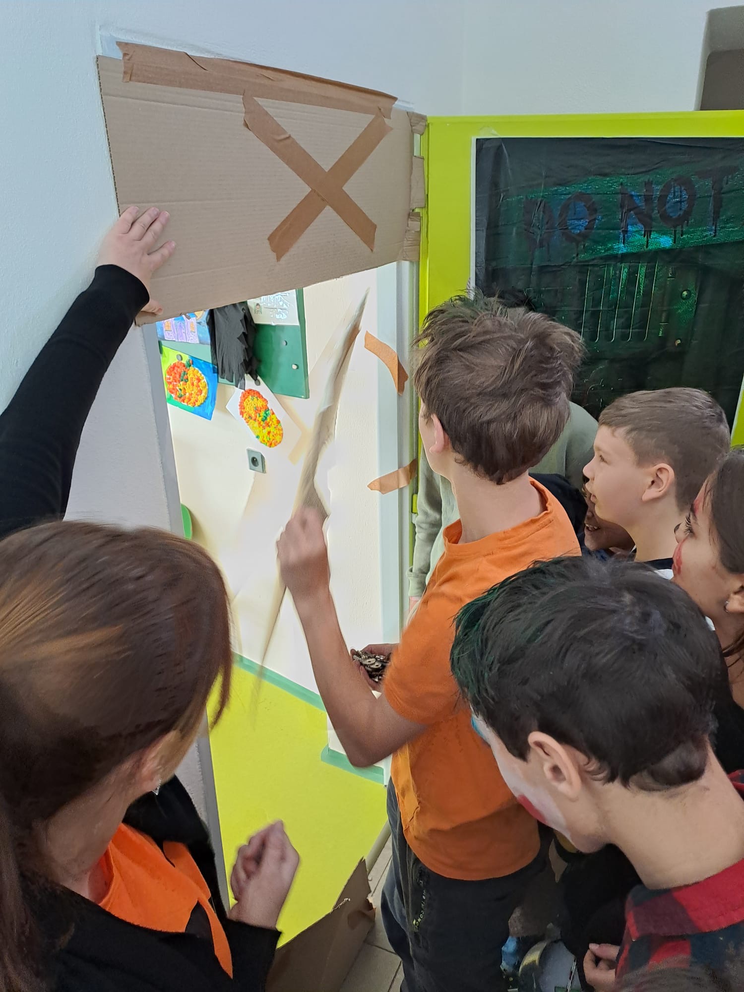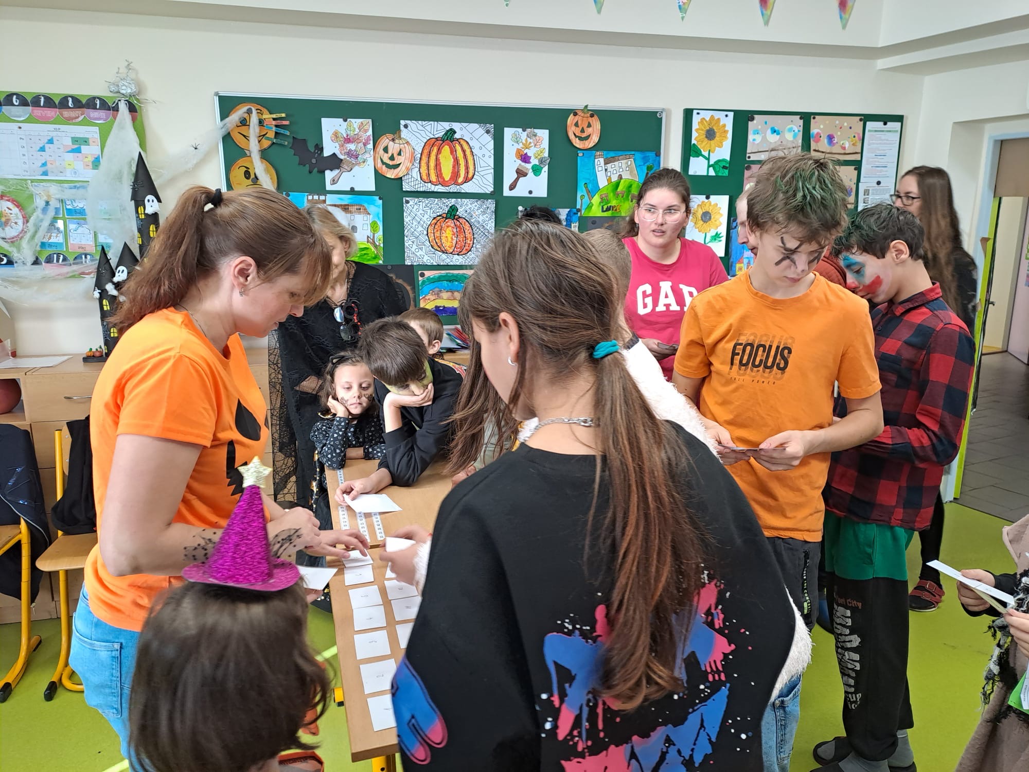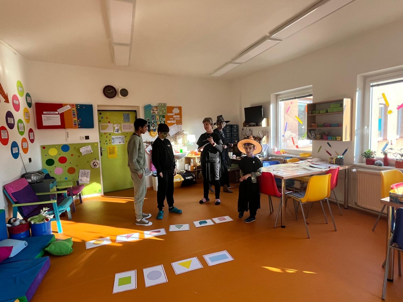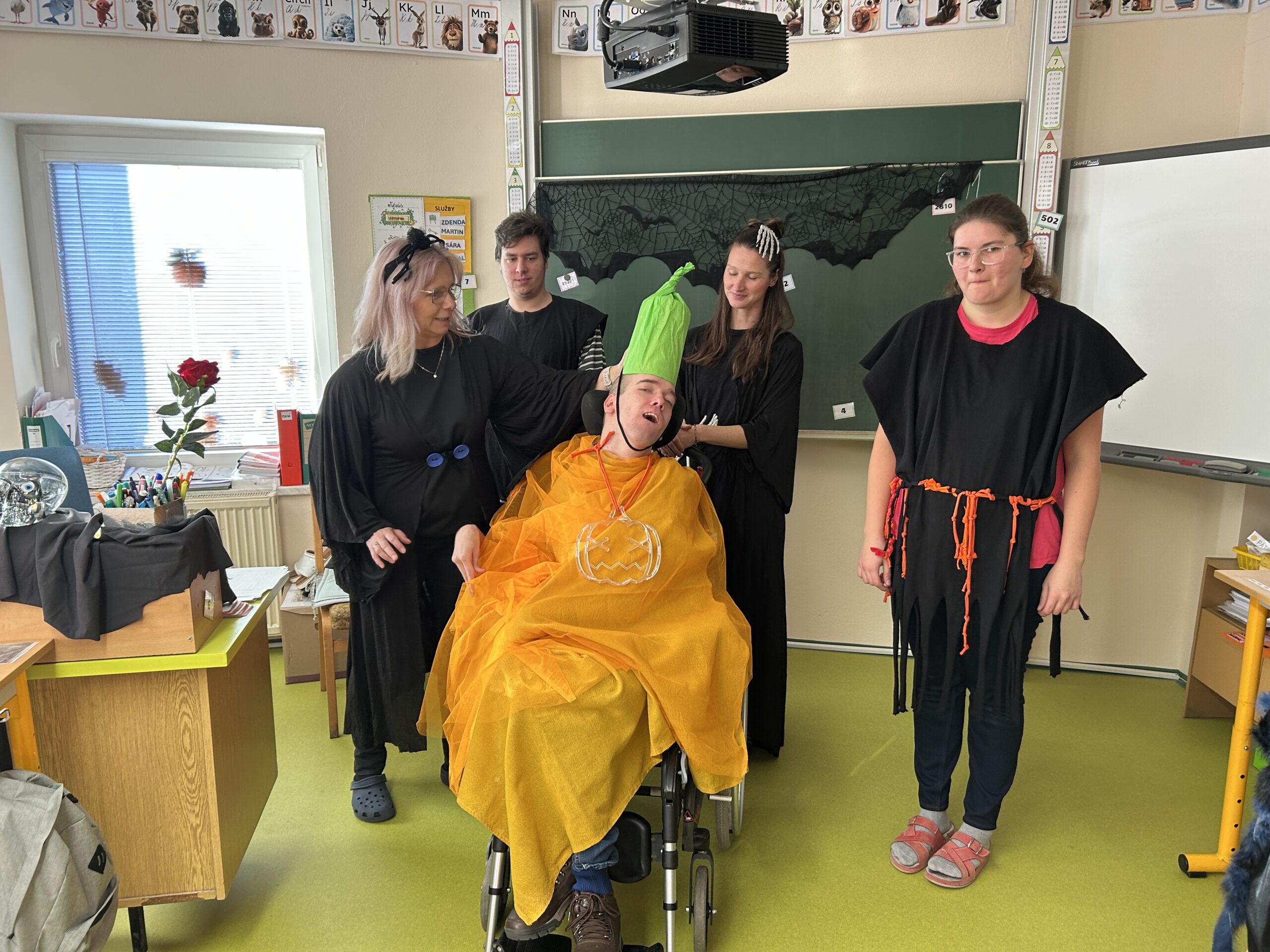Včerejší den byl pro nás výjimečný. První hodinu proběhlo komunitním setkáním, na kterém si naše strašidla připravila strašidelně skvělá vystoupení pro své spolužáky 👻. Smích a potlesk naplnily celou školu – a to byl teprve začátek!